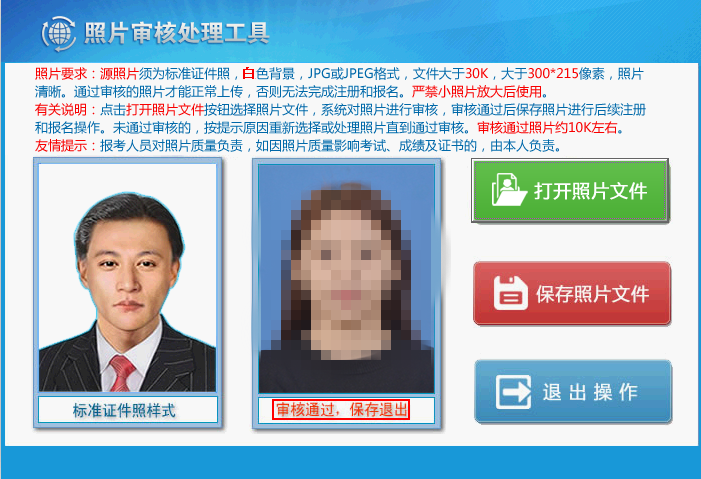 1、建议可以在考试报名前(至少提前一天)使用“报名照片审核处理工具”进行照片审核,