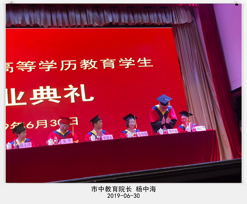 毕业典礼在庄严的国歌中拉开序幕,李建东院长宣读《关于表彰2019届成人高等学历优秀毕业生的决定》,主席台领导为优秀毕业生代表颁奖,并为学生代表颁发了毕业证书和学位证书。