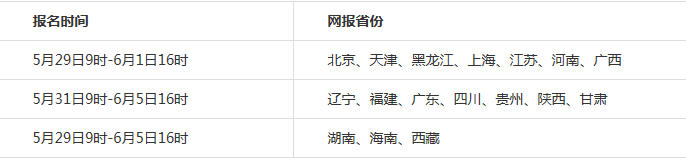 报考省份:每个省份的报考时间不一样,详情见下图: