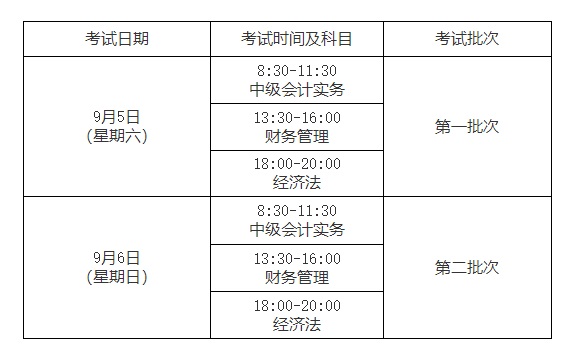 1. 中级资格考试于2020年9月5日—6日举行。各科目具体考试时间如下: